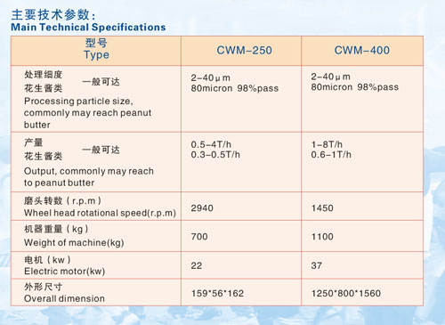 超微磨機具有良好的研磨、破碎性能。該機 用途廣泛,適用于食品、油漆、塑料色漿、各種涂料、 染料等較難加工物料的微細加工,尤其適用于花生醬、 辣椒醬、菜籽、葵花籽、芥末、可可豆、杏仁等含油量 較高物料的加工。其特點是產量高、粒度細、溫升小。 工作原理 該機由高速旋轉的動磨片和定磨片組成,動磨片和定磨片之間的間隙,可通過微調系統(tǒng)根據(jù)所需要的細度指標任意調節(jié),被加工物料從料斗進入磨片之間的工作間隙,在離心力的作用下進入相對運動的動磨片和定磨片之間,通過其可變磨片間隙,經高速旋轉磨片產生的強大離心力渦流磨片的剪切、研磨。從而達到對物料的細化目的。 結構特點 具有結構緊湊,操作、維修、清洗方便等特點。 與物料接觸的零部件均采用優(yōu)質不銹鋼材料。 動、靜磨片采用特殊的磨粒和粘合劑制造,具有高強度、耐腐蝕,根據(jù)加工物料的不同,更換不同種類的磨片。 該機裝有精確的磨片間隙微調系統(tǒng),操作靈活、準確、方便可靠。 該機配有循環(huán)式水冷卻系統(tǒng),可以有效地起到物料溫室控制作用。 |